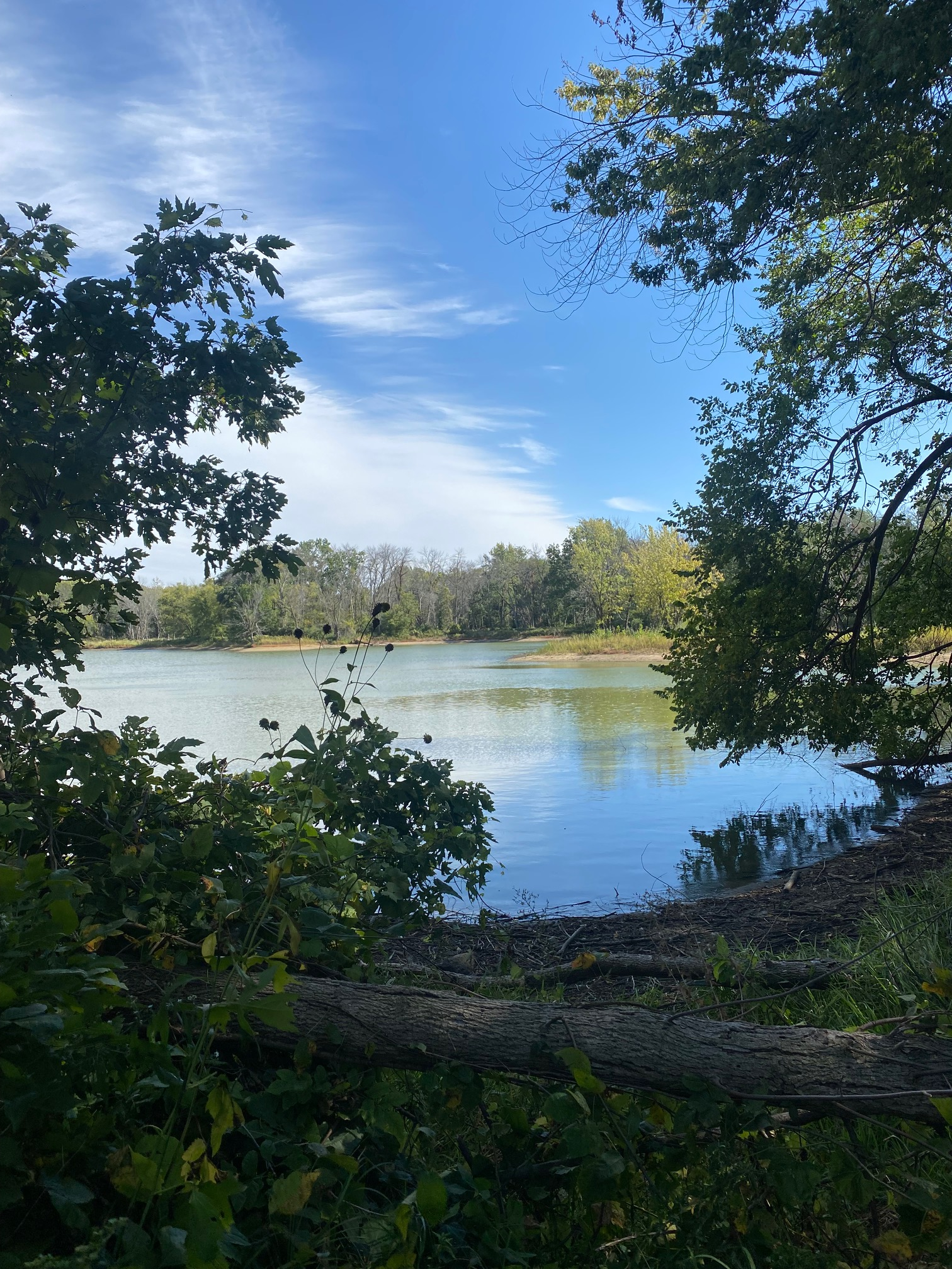 Even though it was the middle of the day, it was chilly. Not so chilly that I absolutely needed a jacket or a sweater or longer pants or a Matrix-style leather duster or Wizard robe or anything. But chilly enough I probably should have worn a jacket or a sweater or longer pants and honestly probably not any of those other things still. I sat on my bench writing in my journal. There was a breeze. I knew that I had been here before. Both in this place–on this same bench, at a different time under different skies–and in a different place–in the same early Fall chill, but on Horseshoe Bluff at the Mines of Spain, or on trails stomping dead leaves into train tracks, or by the Riverwalk staring at the lights over Dubuque in the middle of the night, knowing it is one of your last chances of the season to be there and be able to withstand the cold. I thanked Hartman for the portal to these memories. For the chance to add this moment, these moments, to the collection. For making me realize there are homes outside of Summer I can look forward to, while I let these ones rest.